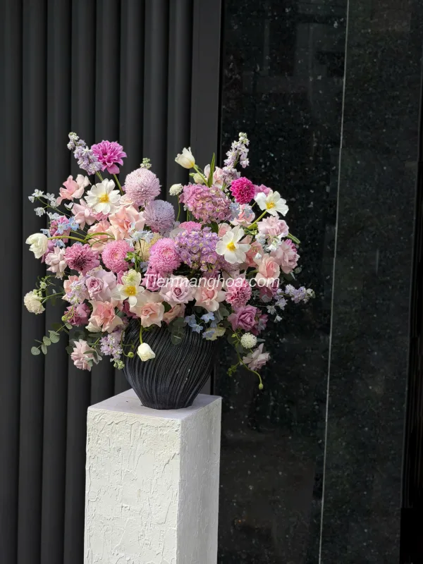 Lưu ý: Các sản phẩm hoa của Tiệm Nàng Hoa thường sử dụng các loại hoa theo mùa có sẵn tại cửa hàng để đảm bảo tính thẩm mỹ và độ bền. Sản phẩm thực tế sẽ tương tự khoảng 80-90% so với hình ảnh mẫu.