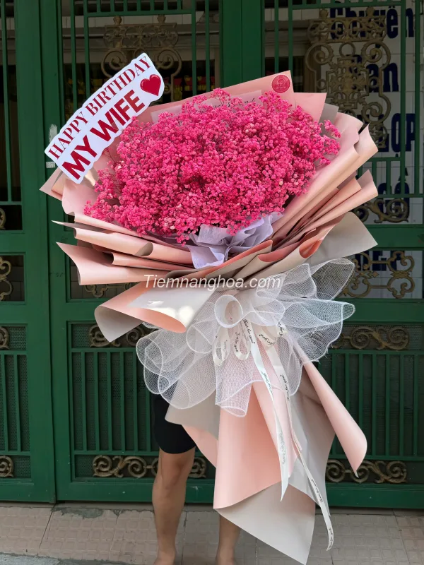 Lưu ý: Các sản phẩm hoa của Tiệm Nàng Hoa thường sử dụng các loại hoa theo mùa có sẵn tại cửa hàng để đảm bảo tính thẩm mỹ và độ bền. Sản phẩm thực tế sẽ tương tự khoảng 80-90% so với hình ảnh mẫu.