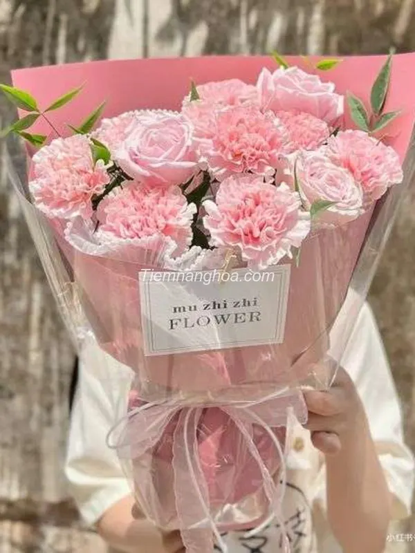Bó Hoa Cẩm Chướng Đơn Mix Hồng Kem HB146