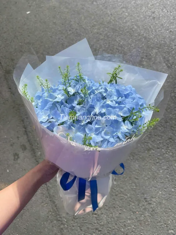 Bó Hoa Cẩm Tú Cầu Xanh Dương & Cỏ Đồng Tiền