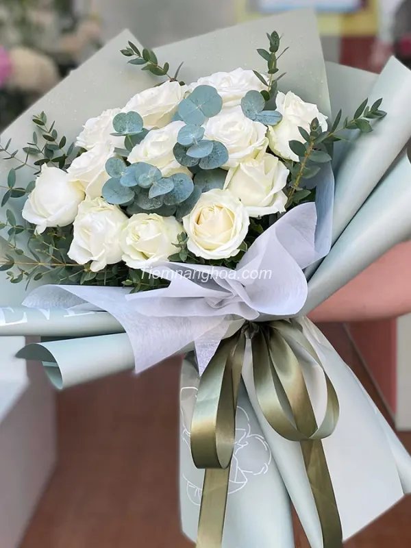 Bó Hoa Hồng Trắng HB43 là một món quà tuyệt vời để thể hiện tình cảm và động viên người thân yêu trong những dịp đặc biệt. Bó hoa được tạo thành từ những bông hoa tươi tắn và được sắp xếp một cách hài hòa để tạo thành một tác phẩm nghệ thuật đầy màu sắc.
