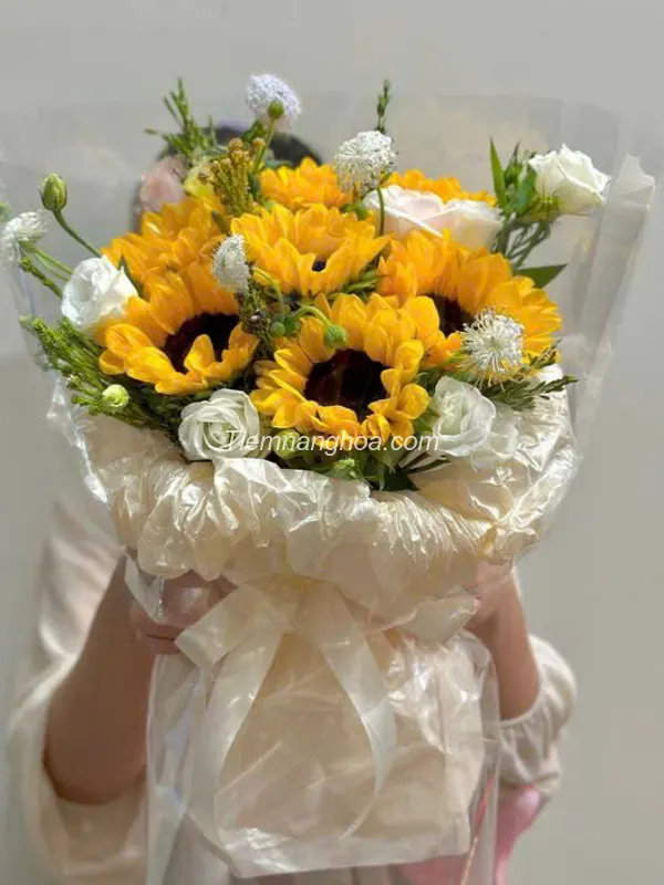 Ý nghĩa: Một bó hướng dương Hàn Quốc – nhẹ nhàng, hiện đại và đầy sức sống, là món quà thay lời chúc rực rỡ đến người thân yêu.
