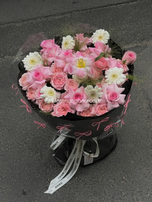 Lưu ý: Các sản phẩm hoa của Tiệm Nàng Hoa thường sử dụng các loại hoa theo mùa có sẵn tại cửa hàng để đảm bảo tính thẩm mỹ và độ bền. Sản phẩm thực tế sẽ tương tự khoảng 80-90% so với hình ảnh mẫu.