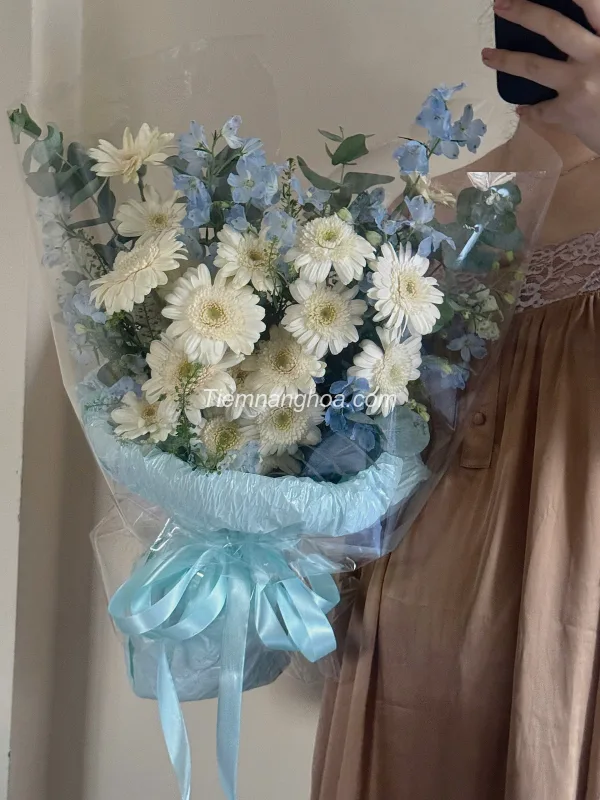 Lưu ý: Các sản phẩm hoa của Tiệm Nàng Hoa thường sử dụng các loại hoa theo mùa có sẵn tại cửa hàng để đảm bảo tính thẩm mỹ và độ bền. Sản phẩm thực tế sẽ tương tự khoảng 80-90% so với hình ảnh mẫu.