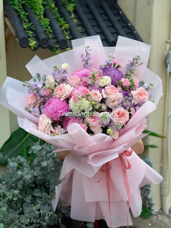 Lưu ý: Các sản phẩm hoa của Tiệm Nàng Hoa thường sử dụng các loại hoa theo mùa có sẵn tại cửa hàng để đảm bảo tính thẩm mỹ và độ bền. Sản phẩm thực tế sẽ tương tự khoảng 80-90% so với hình ảnh mẫu.