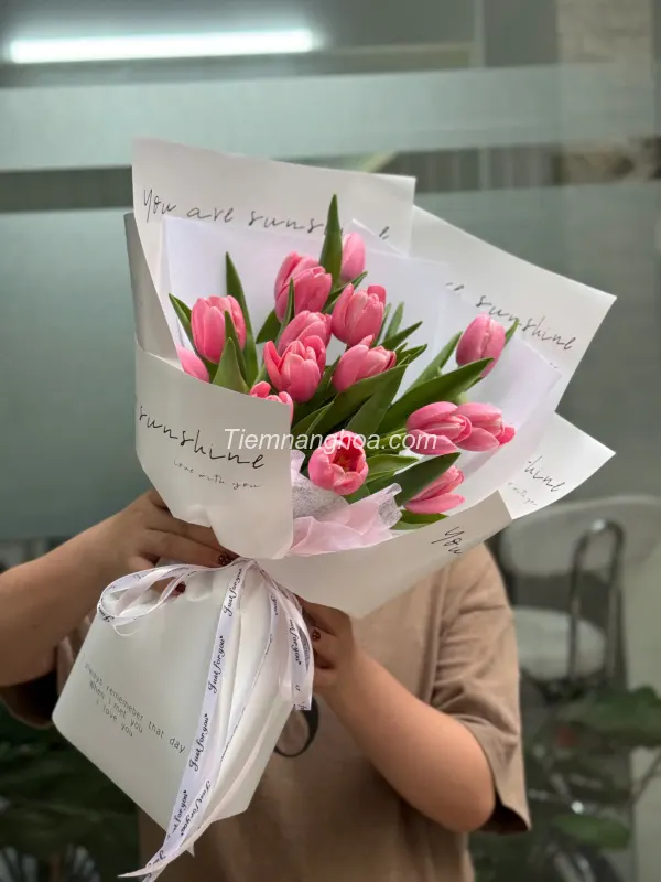 Bó hoa Tulip hồng nhập khẩu HB266