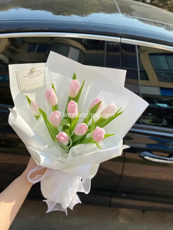 Một bó tulip hồng nhạt mang vẻ đẹp tinh khôi, nhẹ nhàng và đầy nữ tính. Mỗi bông tulip được lựa chọn kỹ lưỡng, căng tràn sức sống, tượng trưng cho sự yêu thương chân thành và những cảm xúc dịu dàng không lời.