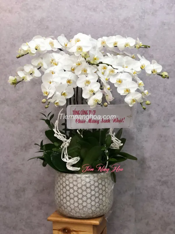 Chậu Lan Hồ Điệp Trắng 8 Cành Tinh Khôi HD04