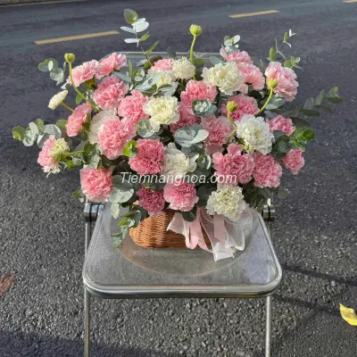 Lưu ý: Các sản phẩm hoa của Tiệm Nàng Hoa thường sử dụng các loại hoa theo mùa có sẵn tại cửa hàng để đảm bảo tính thẩm mỹ và độ bền. Sản phẩm thực tế sẽ tương tự khoảng 80-90% so với hình ảnh mẫu.