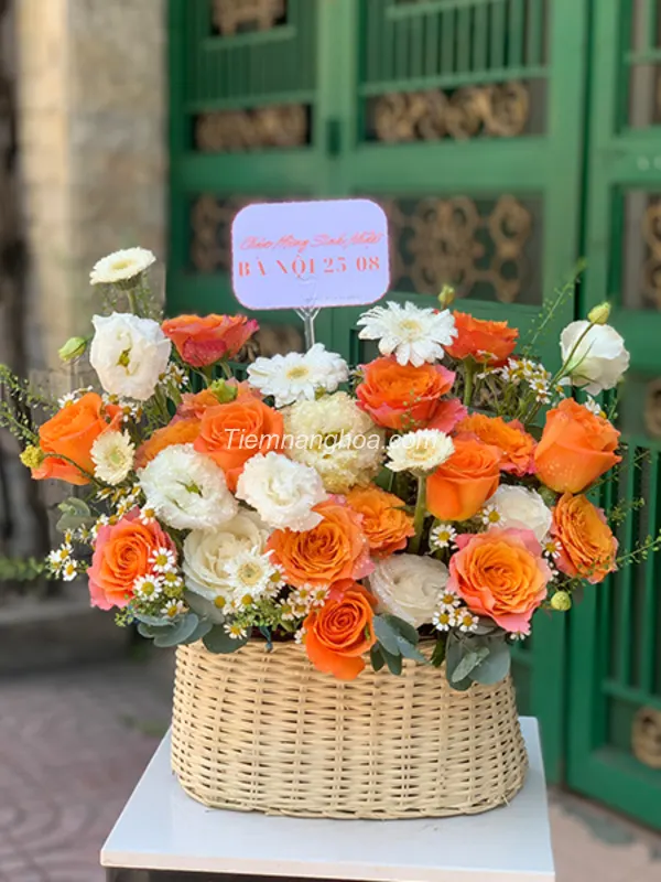 Chúng tôi tạo ra "Creamsicle Sunset Basket" với sự tỉ mỉ và tình tế đặc biệt. Mỗi bông hoa và lá cây được lựa chọn cẩn thận để đảm bảo chất lượng tốt nhất. Thiết kế này không chỉ mang đến vẻ đẹp ngoạn mục mà còn là biểu tượng của sự tình te^ và sự chăm sóc đặc biệt từ chúng tôi.
