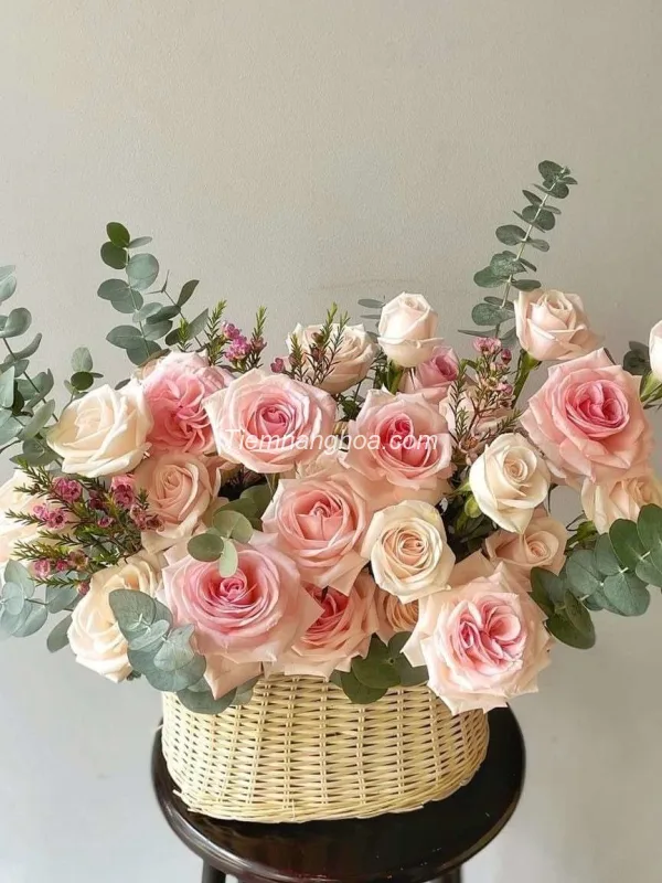 Giỏ Hoa Tone Hồng Kem Pastel Ngọt Lịm HG19