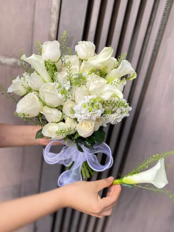 Vì vậy, hoa cưới cầm tay cô dâu không chỉ là một phần trang trí, mà còn là biểu tượng của tình yêu và hạnh phúc trong ngày cưới.