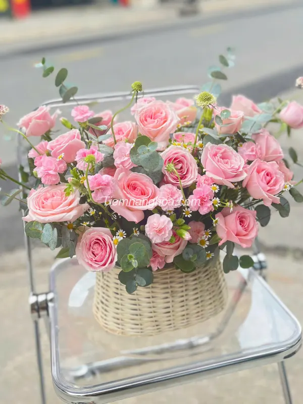 Hoa giỏ hồng nhẹ nhàng tinh tế HG28