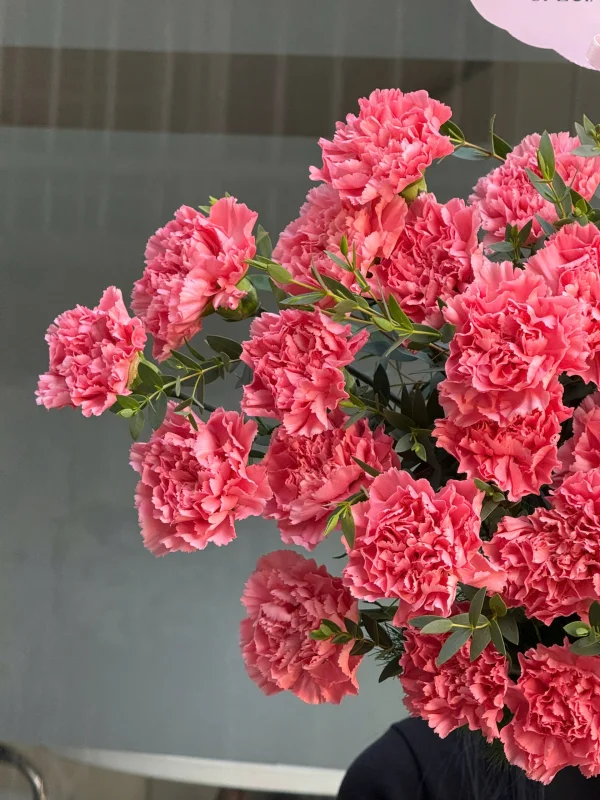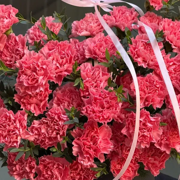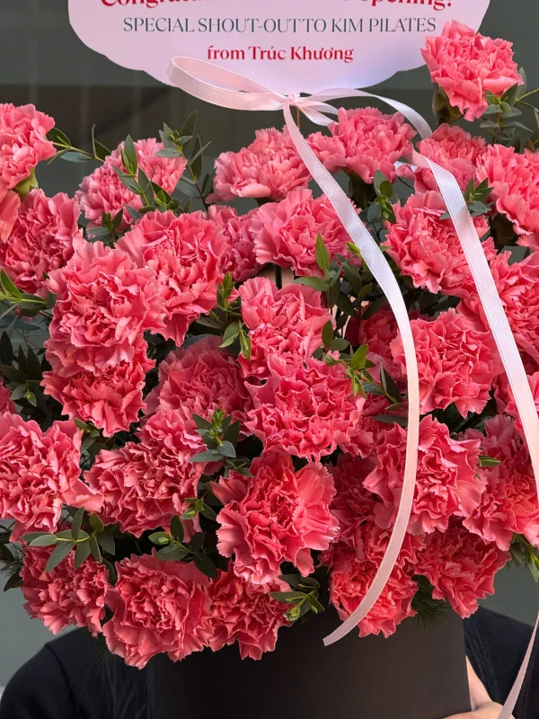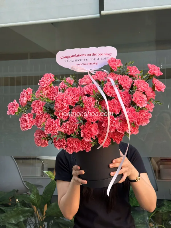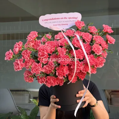 Hộp hoa chúc mừng tone hồng, sử dụng hoa cẩm chướng nhập khẩu cao cấp HH25