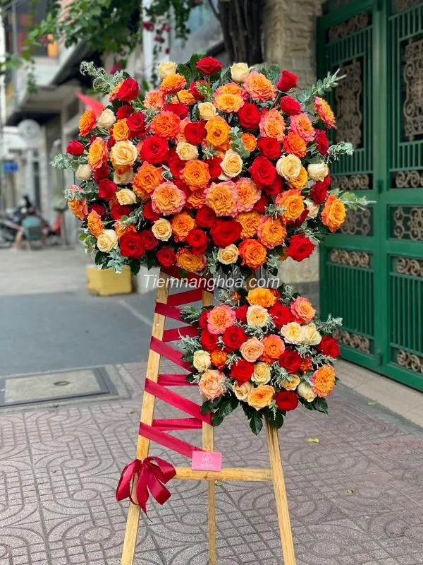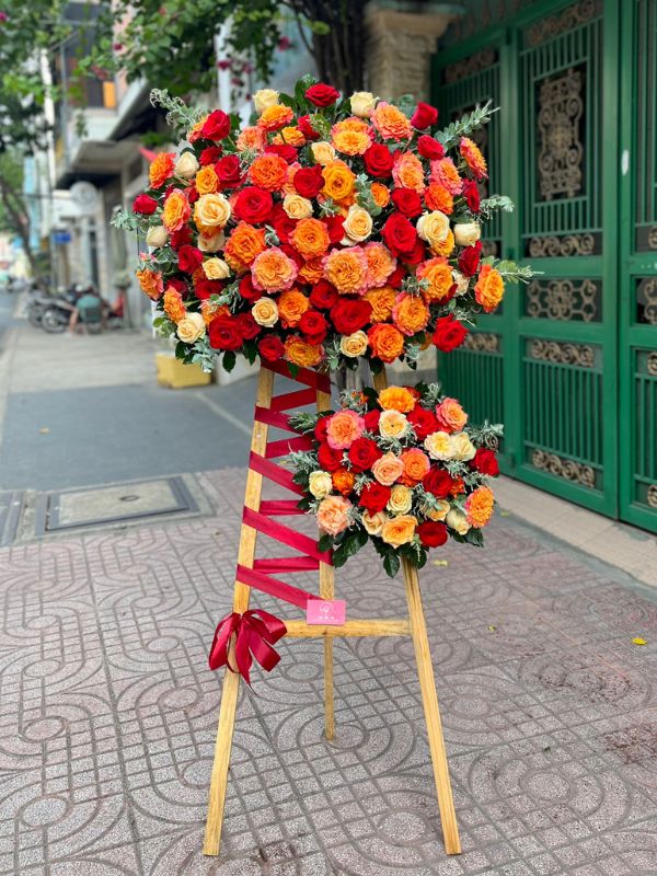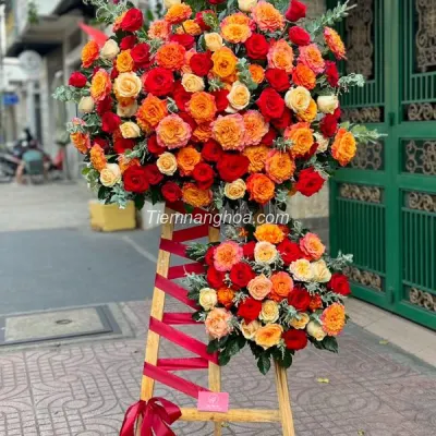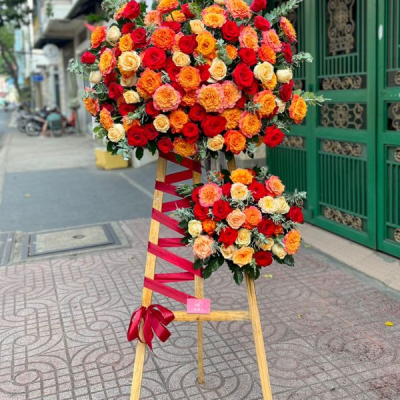 Kệ Hoa Khai Trương KT23 là kệ hoa được khoác lên mình gam màu Đỏ - Cam - Vàng đặc trưng, mang một màu sắc vô cùng nổi bật khiến cho không gian trở nên lung linh, sáng bừng.