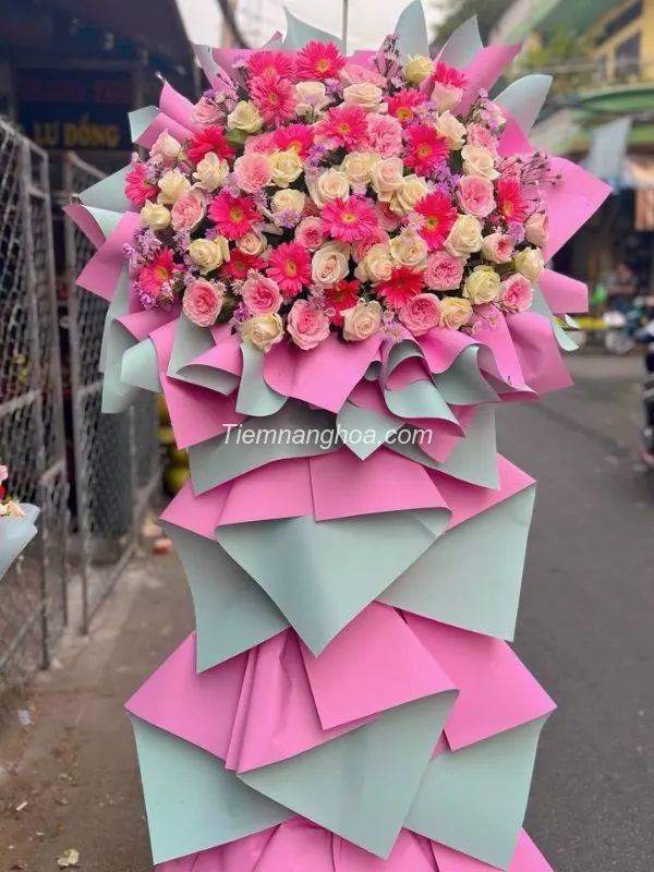 Lưu ý: Các sản phẩm hoa của Tiệm Nàng Hoa thường sử dụng các loại hoa theo mùa có sẵn tại cửa hàng để đảm bảo tính thẩm mỹ và độ bền. Sản phẩm thực tế sẽ tương tự khoảng 80-90% so với hình ảnh mẫu.
