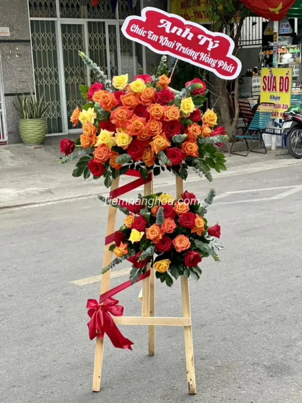Kệ hoa khai trương KT-08 thường được chọn lựa với màu sắc tươi sáng và hài hòa, tượng trưng cho sự may mắn và thành công. Các loại hoa phổ biến được sử dụng trong hoa khai trương bao gồm hoa hồng đỏ, hoa hồng cam, hoa hồng vàng và các hoa lá phụ khác. Hoa khai trương thường được sắp xếp trong các kệ hoa hoặc bó hoa lớn, tạo nên một tác phẩm nghệ thuật đầy màu sắc và độc đáo.