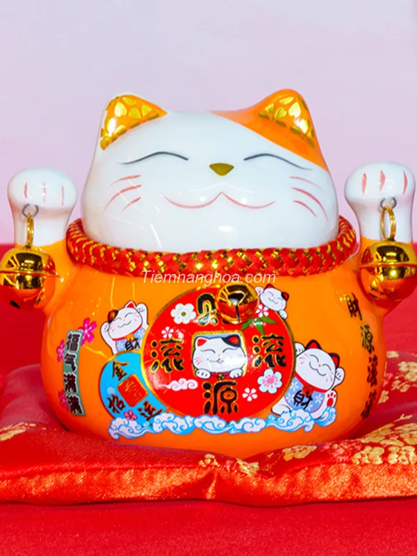 Mèo Thần Tài Khai Vận Phát Tài – Cam 11cm HF21013-2
