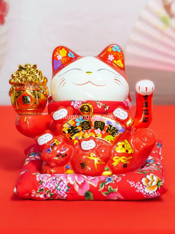 Mèo Thần Tài Kim Tiền Đại Phát Tài - Đỏ - 16 cm