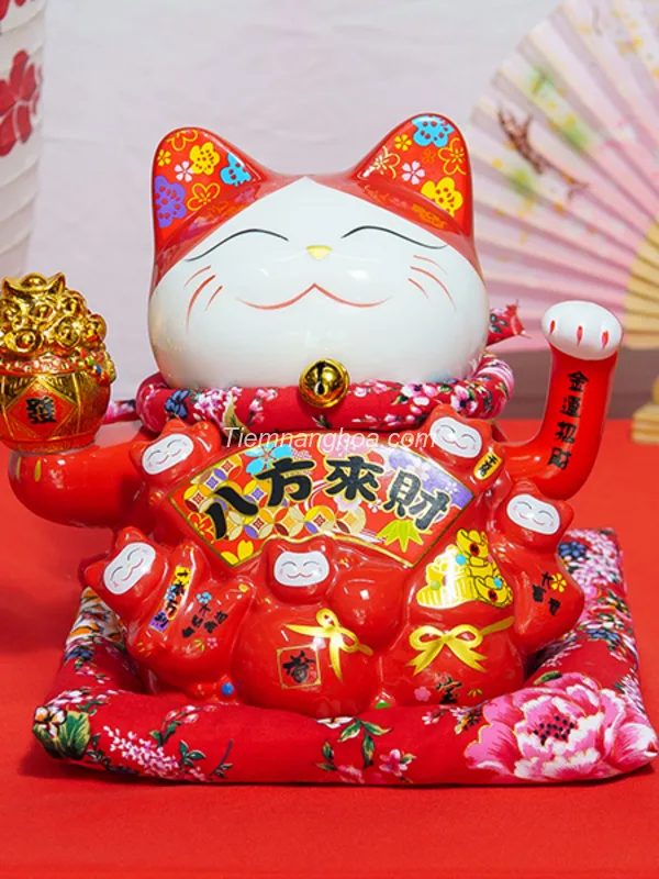 Mèo Thần Tài Kim Tiền Đại Phát Tài - Đỏ - 23 cm