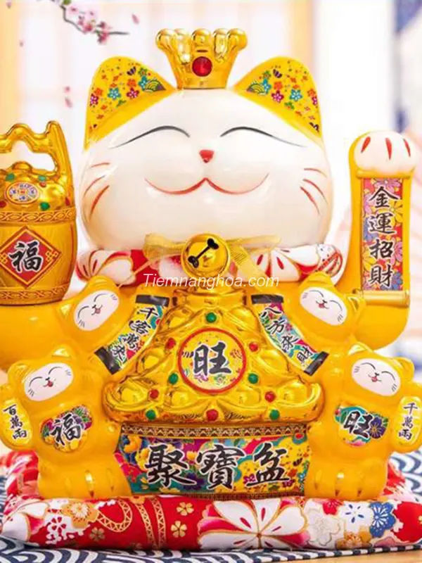 Chất liệu gốm sứ cao cấp và kích thước đa dạng (cao 35cm/29cm/23cm/22cm) tùy chọn, đảm bảo bạn có thể lựa chọn một chiếc mèo phù hợp với không gian của mình. Mèo Thần Tài được thiết kế với đế đệm hoa đi kèm và hộp đựng hoa văn sang trọng, tạo nên một bức tranh trang trí đẹp mắt và ý nghĩa.
