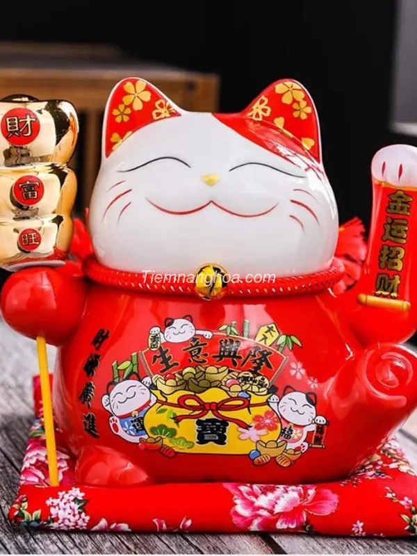 Mèo Thần Tài Vẫy Tay Tài Lộc Đỏ 24x20x22 - H50178