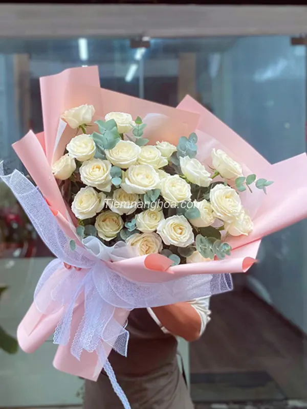 Lưu ý: Các sản phẩm hoa của Tiệm Nàng Hoa thường sử dụng các loại hoa theo mùa có sẵn tại cửa hàng để đảm bảo tính thẩm mỹ và độ bền. Sản phẩm thực tế sẽ tương tự khoảng 80-90% so với hình ảnh mẫu.