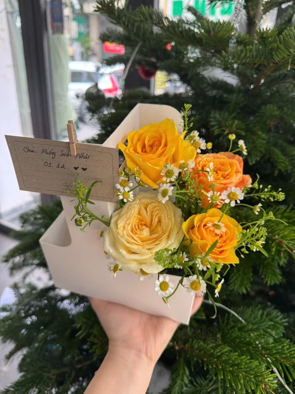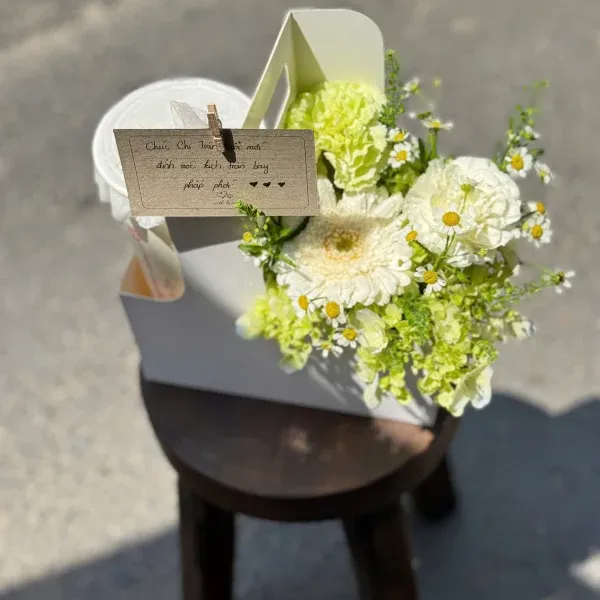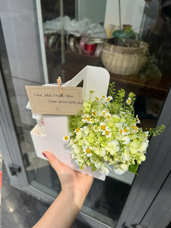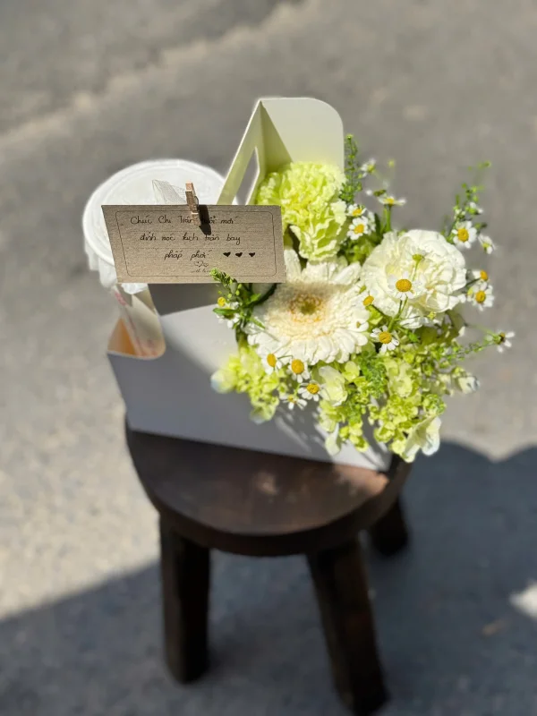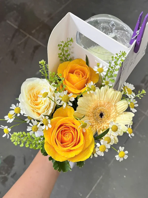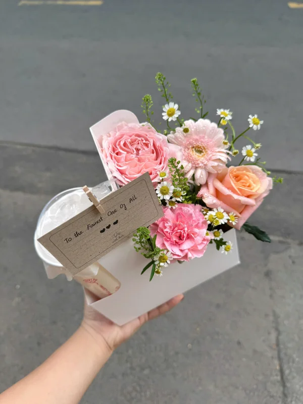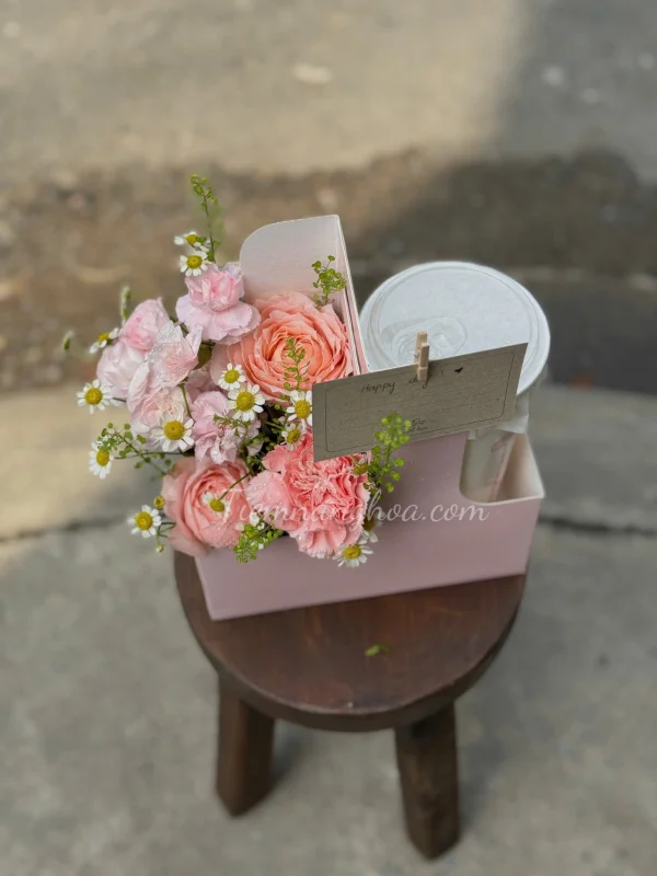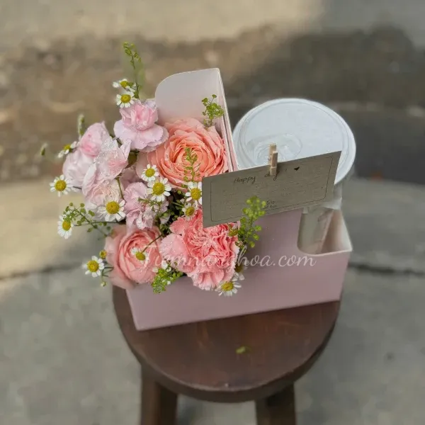 Giỏ hoa được thiết kế với sự tinh tế và sáng tạo, tạo nên một vô cùng ý nghĩa. Khách hàng có thể chọn tone màu yêu thích hoặc để chúng tôi tự phối màu theo sự sáng tạo của đội ngũ chuyên gia cắm hoa của chúng tôi. Những bông hoa tươi tắn được cắm gọn gàng, tạo nên một vườn hoa ngay bên cạnh cốc nước.