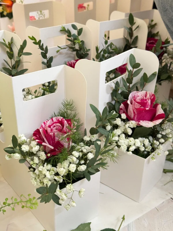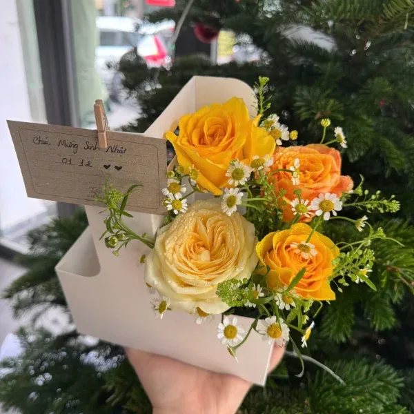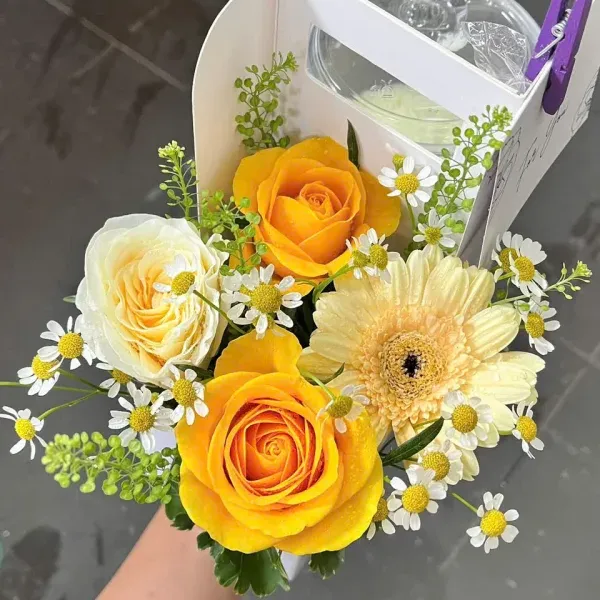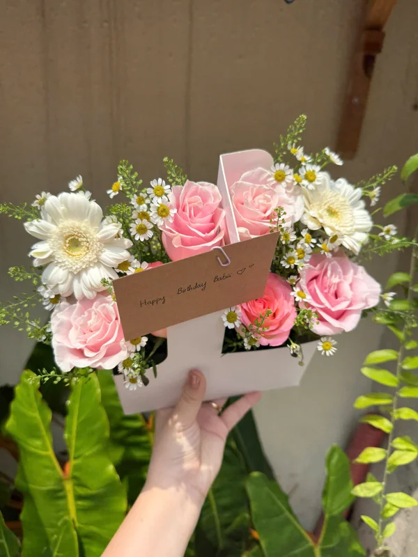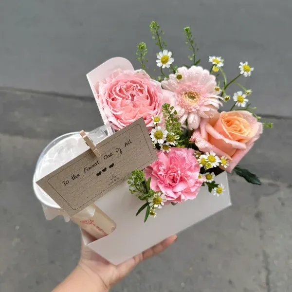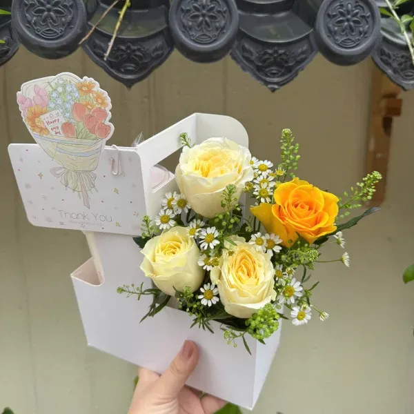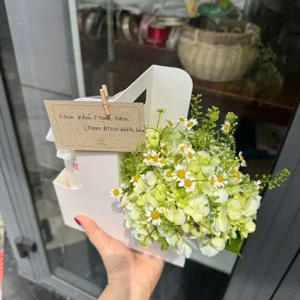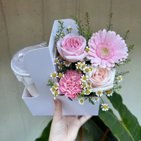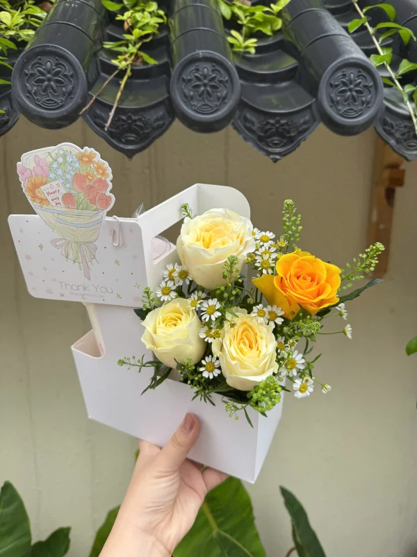 Giỏ hoa được thiết kế với sự tinh tế và sáng tạo, tạo nên một vô cùng ý nghĩa. Khách hàng có thể chọn tone màu yêu thích hoặc để chúng tôi tự phối màu theo sự sáng tạo của đội ngũ chuyên gia cắm hoa của chúng tôi. Những bông hoa tươi tắn được cắm gọn gàng, tạo nên một vườn hoa ngay bên cạnh cốc nước.